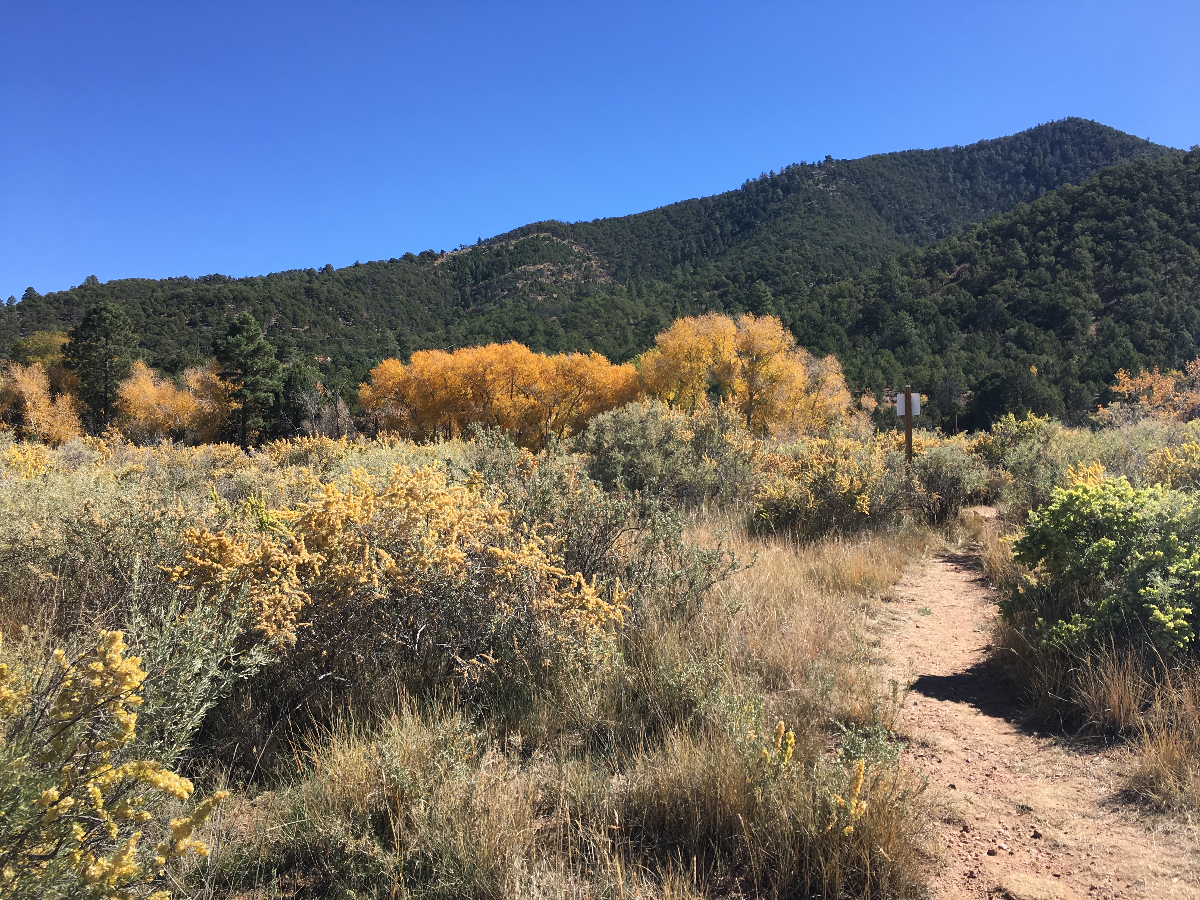 I ventured out to the Santa Fe Nature Preserve to film some test clips for a project I’m working on. As soon as my vehicle stops, I jump out, gear ready to go, and hit the trail. The air is clean. The sky is deep blue. The golden leaves of autumn splashed against the mountains of the southern Rockies. Spectacular.